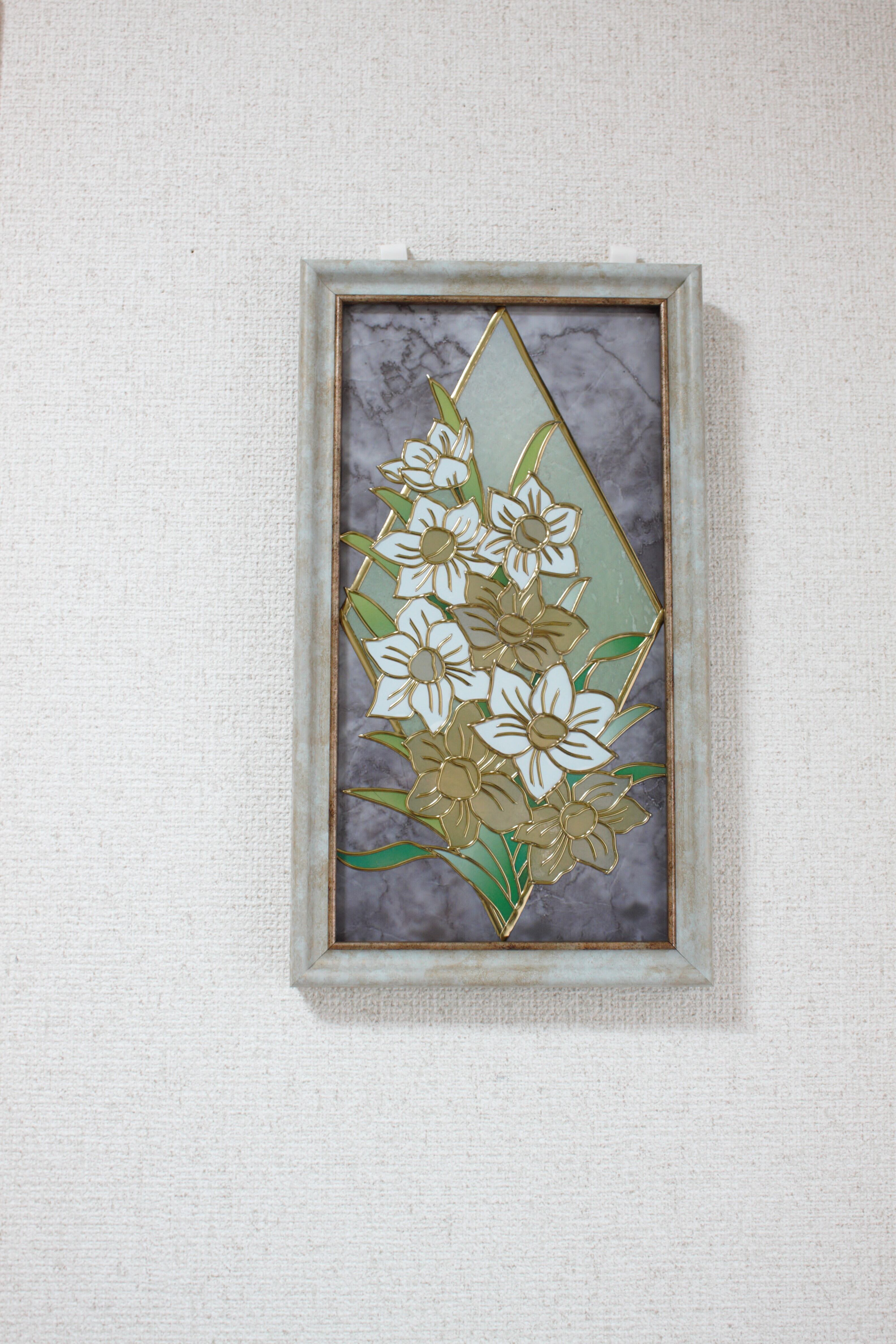春の訪れを感じさせる、可愛らしい水仙の花をモチーフにした作品。銀のリード線、裏は金のリード線で仕上げているので、雰囲気に合わせてリバーシブルでお使いいただけます。
