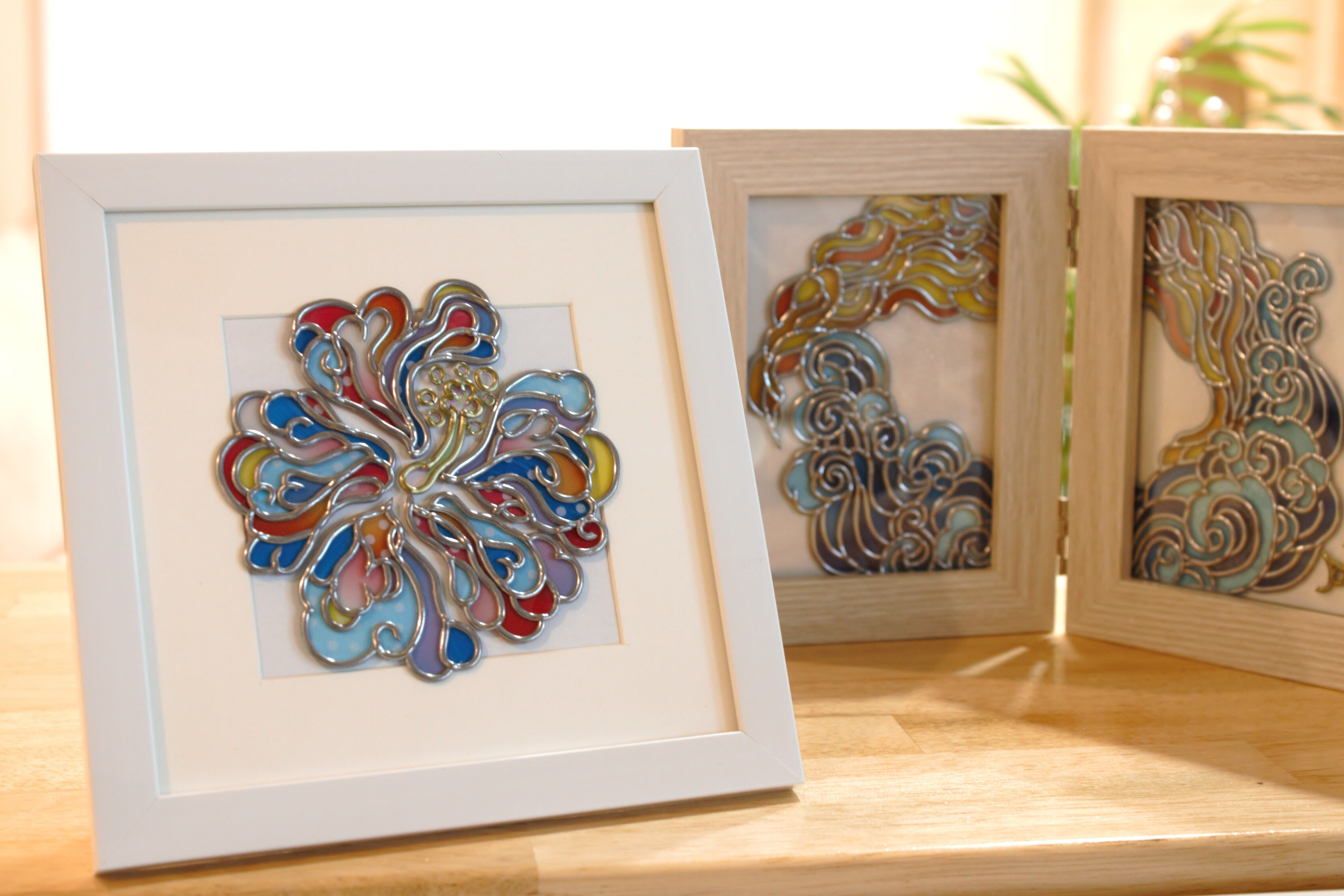 南国の鮮やかなハイビスカスの花をモチーフにしたグラスアート作品。