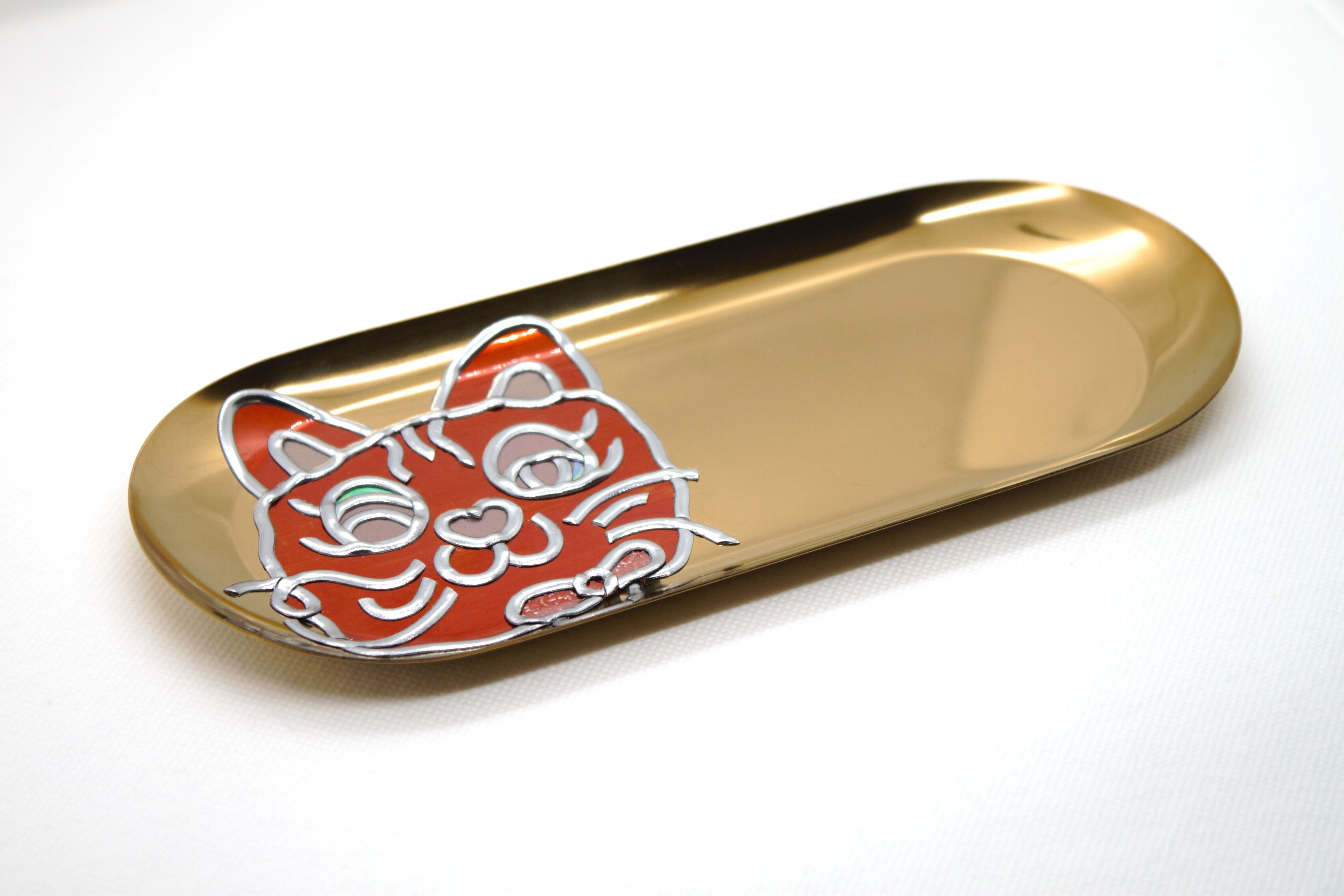 伝統的な招き猫をモチーフにしたグラスアートトレイ。